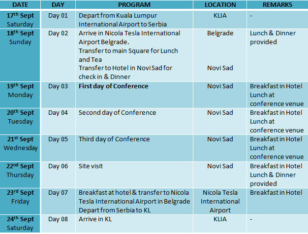 EVENT ITINERARY – ISWA WORLD CONGRESS 2016,