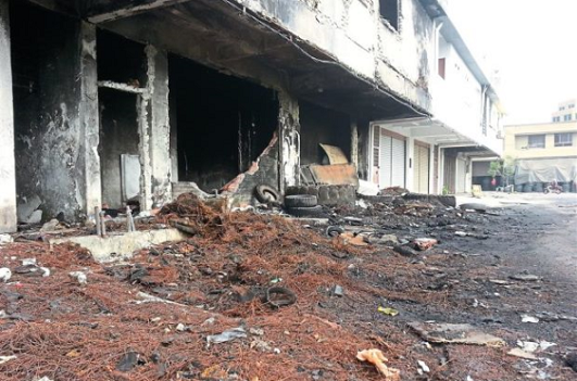 StarMetro visited the site and noticed that the abandoned double-storey shoplot was blackened with soot from the burning of hundreds of tyres.