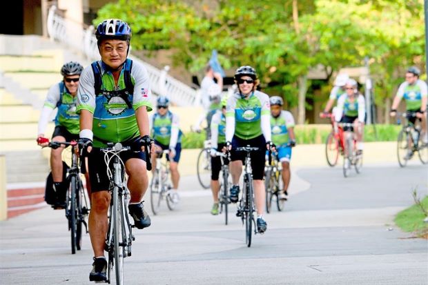 Dressed in bright blue, green and grey t-shirt and black cycling shorts, the enthusiastic Yun began his journey at 8.30am from the Pullman Hotel here yesterday. He is leading 15 embassy staff and their family members on a six-day cyclethon to mark World Environment Day, which falls on Friday – the day they end their trip in Singapore.